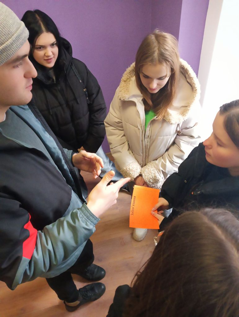 На фото студенти 3-го та 4-го курсу Університету, які відпрацьовують навички роботи у команді та пояснення дефініцій.