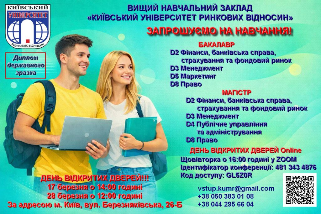 🎓 ВНЗ «Київський університет ринкових відносин» – вступ 2026 ⏳ Час обирати сучасну освіту! 📙Університет відкриває